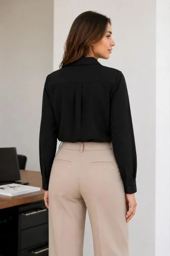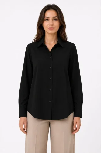 Uzun Kol Gömlek Düğmeli Klasik Yaka Günlük ve Ofis Şıklığına uygun Siyah