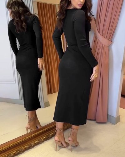 • Kadın uzun kollu kruvaze yaka yandan toka detaylı önden çapraz detaylı ottoman elbise